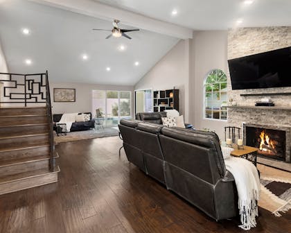 Living room additions are developed to align with the existing architectural style, rooflines, and interior details of the home. During design development, exterior elevations, ceiling heights, and molding details are reviewed to support visual consistency between new and existing construction. Material selections are coordinated within the approved project scope to maintain continuity where possible.
