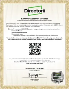As a Directorii contractor, we have been thoroughly vetted to meet Directorii’s high standards. Directorii is committed to guarantee your project with us with a $20,000 guarantee so you can enjoy risk-free protection for your home improvement project.